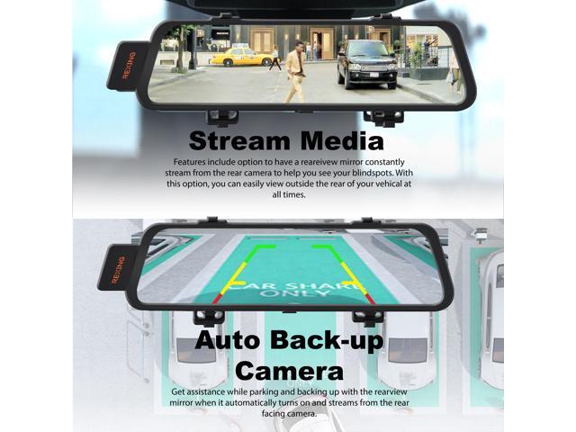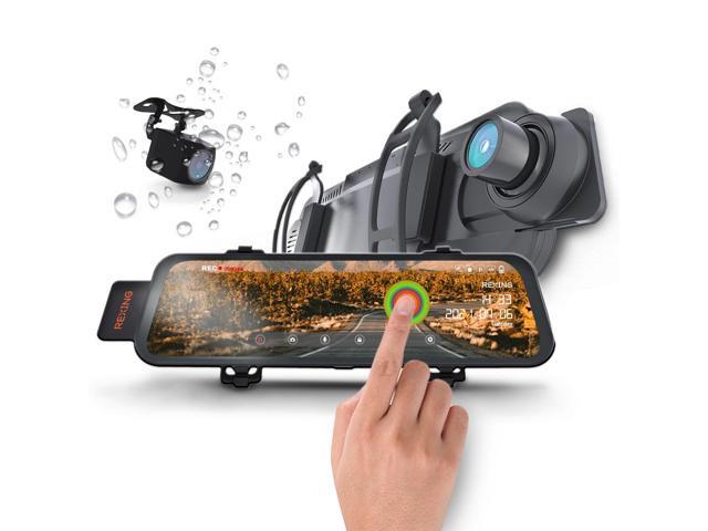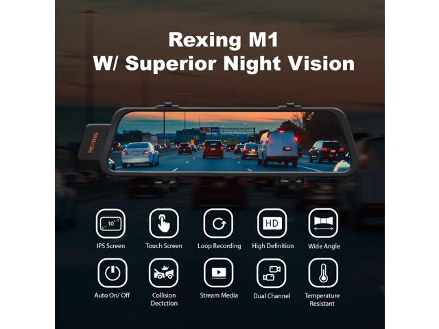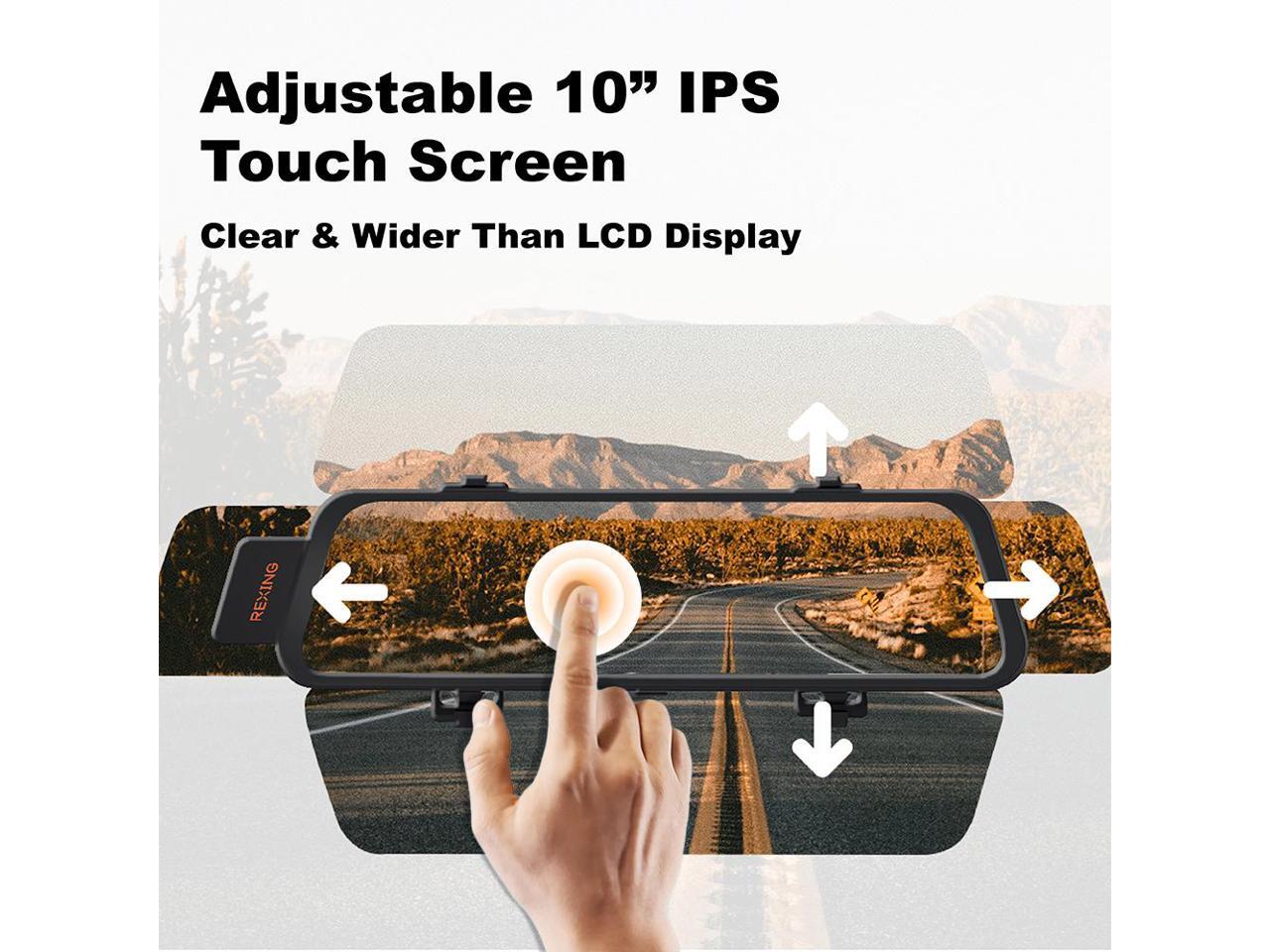 Rexing M1 HD Dual Channel Rear View 10” IPS Touch Screen Mirror Dash Cam 1296p + 720p Wide Angle Dashboard Streaming Media Recorder DVR with Rear Camera, G-Sensor, Loop Recording, Backup Camera