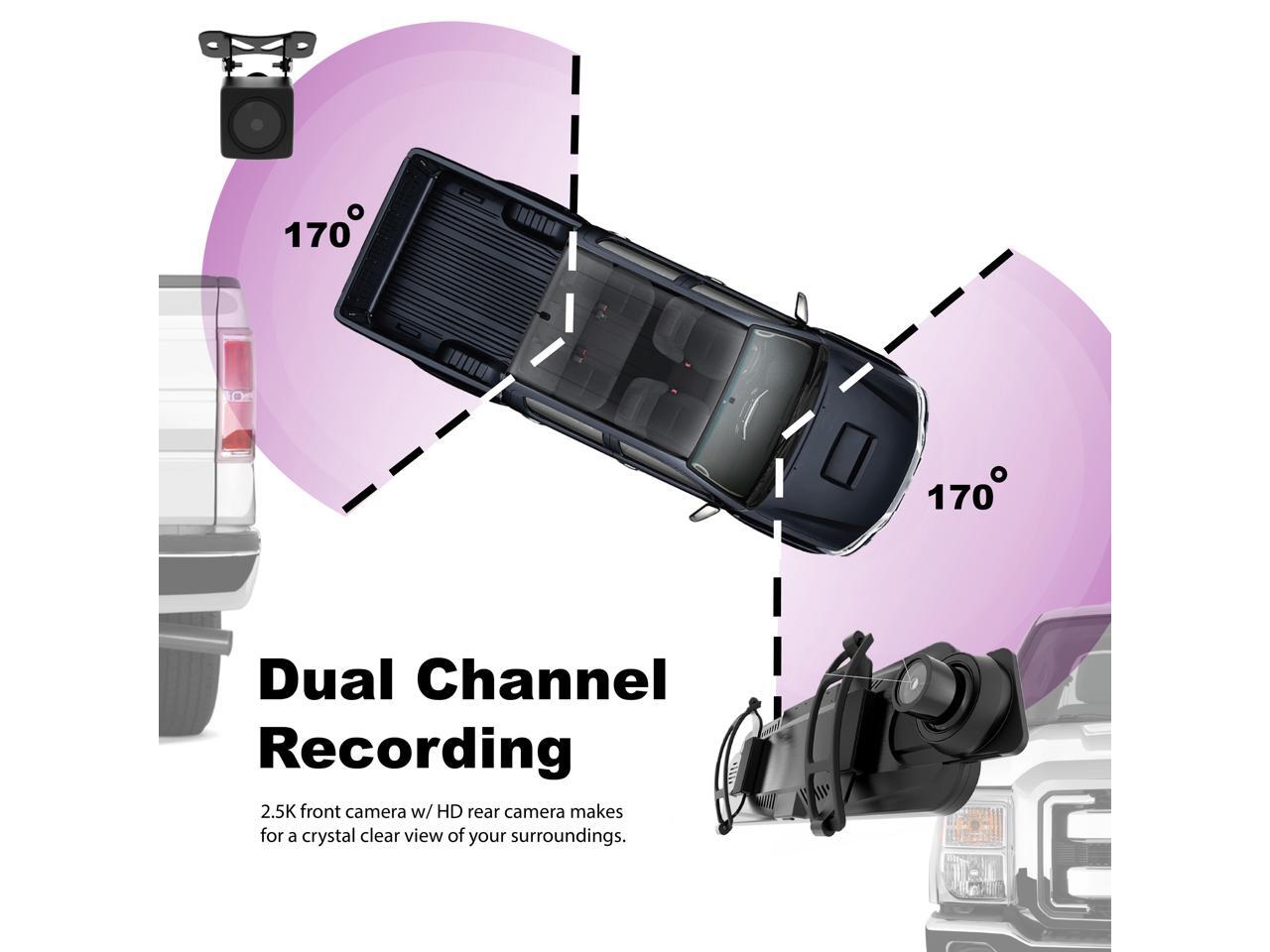 - HD DUAL-CHANNEL RECORDING: Record from two separate perspectives by connecting the HD REAR CAMERA to the front camera. You may also use the rear camera as a backup camera with the 10” wide touch screen display.