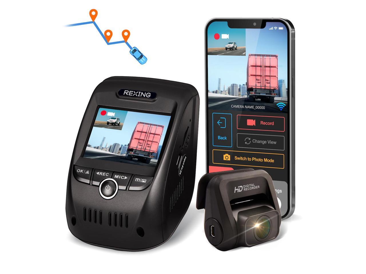 Rexing V1P Pro Dual 1080p Full HD Front and Rear 170° Wide Angle Wi-Fi Car Dash Cam with Built-in GPS Logger, Supercapacitor, 2.4" LCD Screen, G-Sensor, Loop Recording, Mobile App, Parking Monitor