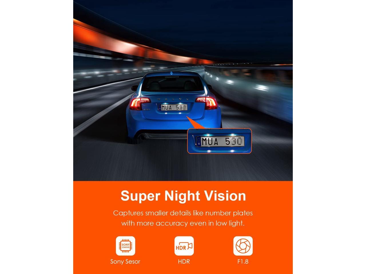 - Dash Camera with Night Vision: Vantrue E1 mini dash camera is equipped with a top-quality sony CMOS sensor that's capable of capturing crisp 2592*1944P footage and enhancing it in tricky weather conditions.