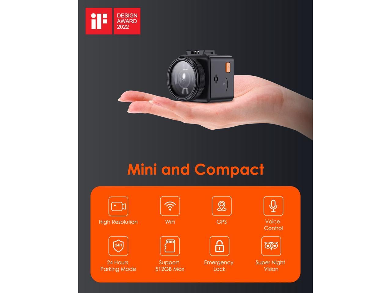 Vantrue 2.5K WiFi Mini Dash Cam with GPS and Speed, Voice Control Front Car Dash Camera, 24 Hours Parking Mode, Night Vision, Buffered Motion Detection, APP, Wireless Controller, Support 512GB Max