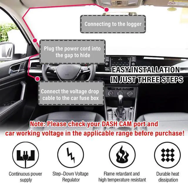 24-Hour Full Day Monitoring: A dash cam that can stably record must have a set of step-down wires silently accompanying it! And our product is such a presence! It can provide 24-hour uninterrupted power supply for your dash cam. Even if the car stalls, it can still operate stably. Providing strong guarantees for maintaining the safety of your car and property.