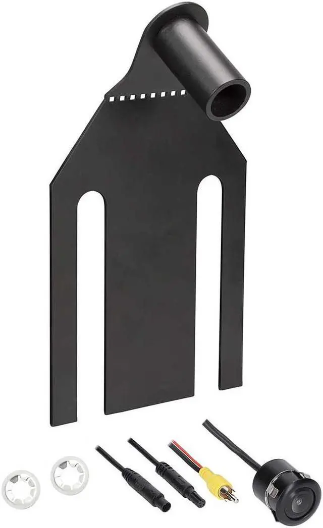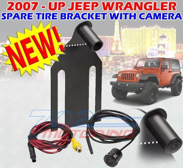 Mount a backup camera to the rear spare tire with this bracket designed for Jeep Wranglers. The adjustable bracket mounts to the factory studs of the spare wheel. iBeam's Flush Mount Backup Camera with metal housing is included in the kit.