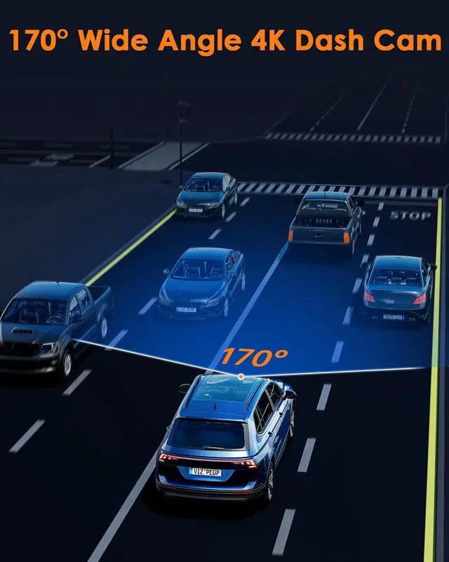 - High Resolution 4K wide angle front camera: Provides full coverage of your vehicle from every angle in day and night.