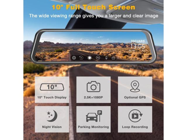 - 10" Touch Screen: 10" Touch Screen for you can easily to adjust the viewing angle and display mode, and can also be used as a rear mirror.