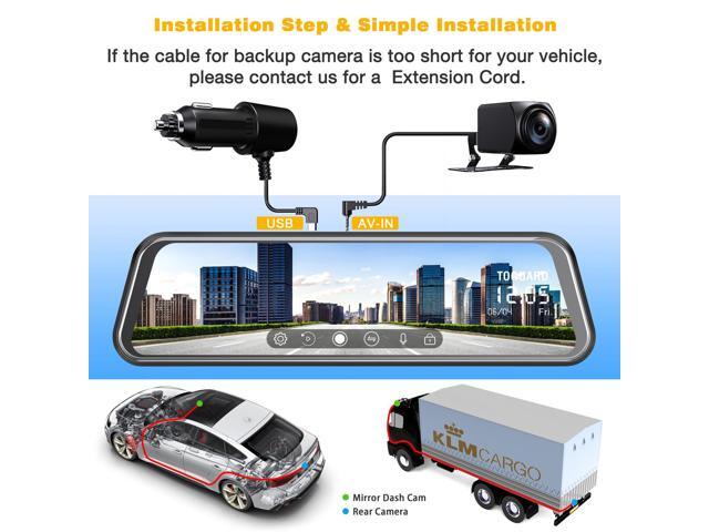- Value-added Service & 24H Customer Service: The mirror dash cam with18.04 ft rear camera cable and 11 ft car charge, easy to install. If you need other accessories or more help, please contact with us.