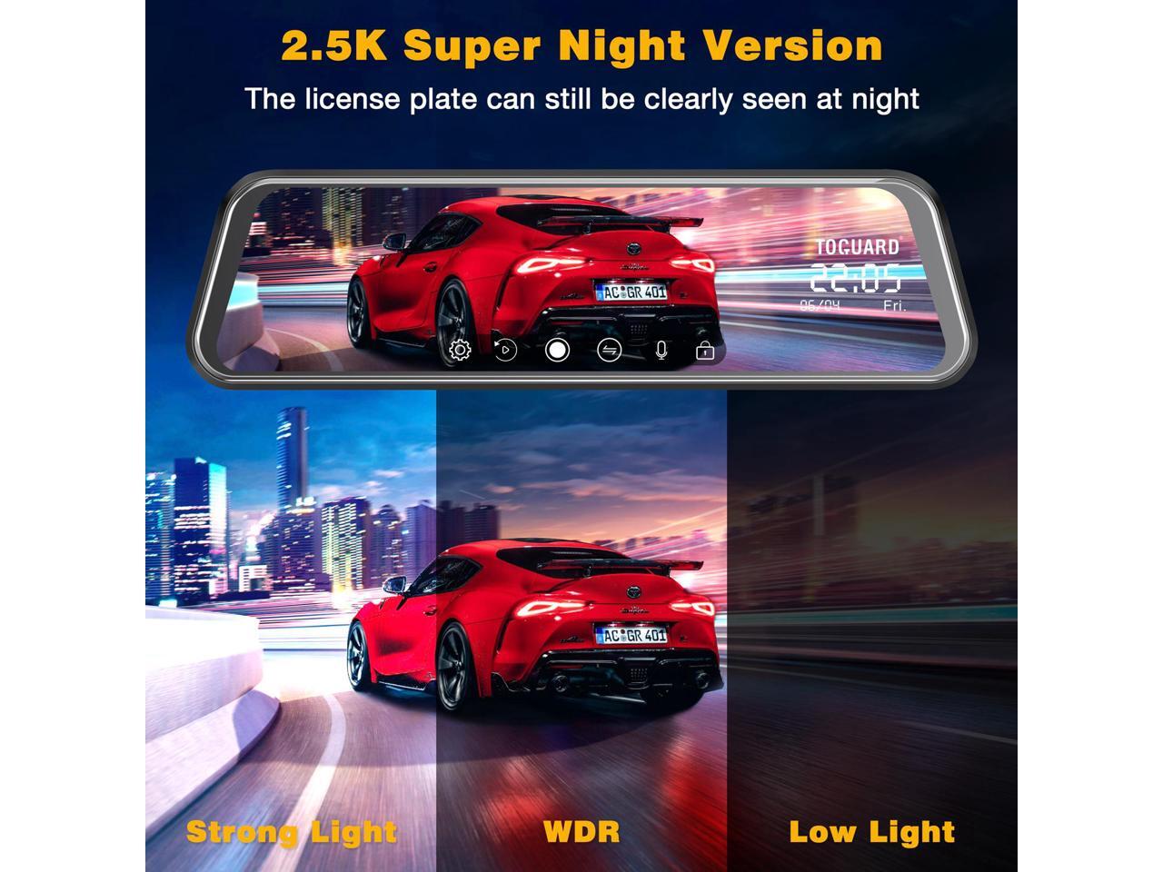 - 2.5K Full HD & Excellent Night Vision: The mirror dash cam achieve full-high-definition video resolution up to 2560 x 1440, can shoot clear videos and enhance details in low light conditions.