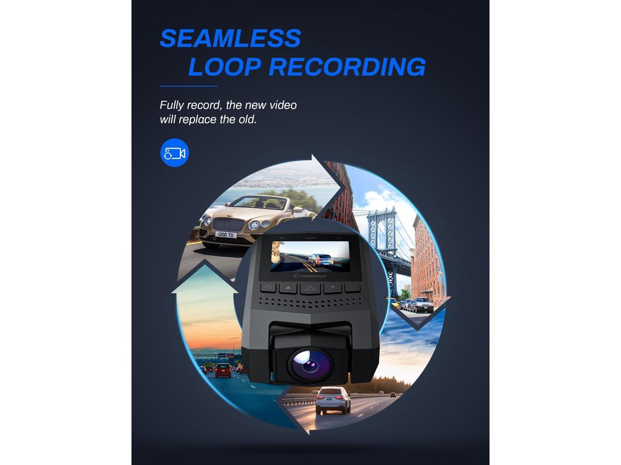 - Mini but Powerful--CR250 dash cam features all the important features of dash cam: Loop Recording, G-sensor, Emergency Lock, Parking Guard, Auto On/Off, Motion Detection, Screensaver, etc.