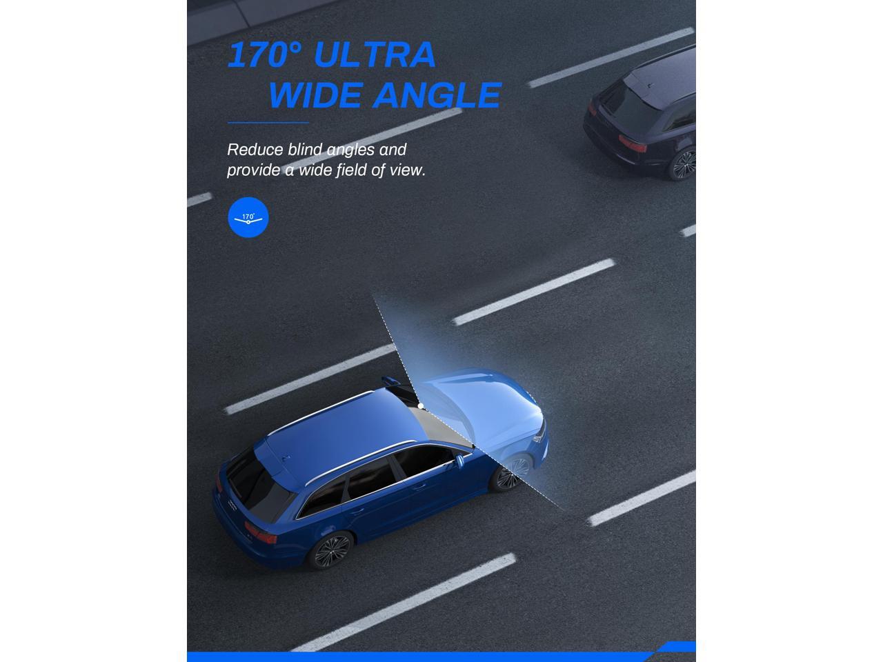 - Adjustable front Lens--The adjustable lens makes it possible for you to capture more details as you like. It can easily cover 4 lanes and ensure there is no dead angle in front of the car.