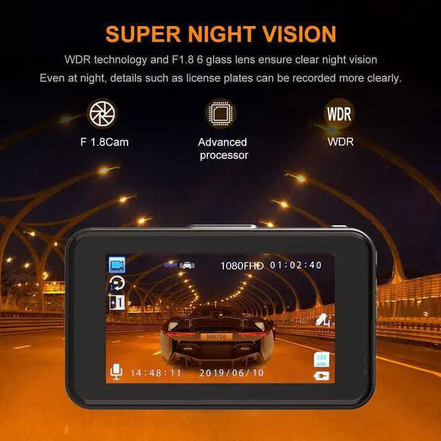 SUPER NIGHT VISION AND WDR TECHNOLOGY CAR CAMERAS- This dash camera for car uses an advanced sensor with LED lights to ensure full HD recording during the day and night. Dashboard Camera is designed with F 1.8 aperture and Wide Dynamic Range, thus when you driving in the evening with this front dash cam that will be safer and reliable. Dash cam charger with USB port, no worry about the charging problems of phones/mobile electronic devices even thought using this dashcam
