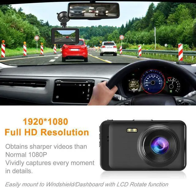 3 INCH LED FULL HD 1080P DASHCAMS - The dash cam with sd card FHD 1920X1080P at 30 fps video enable to capture every road conditions and license plates details. You can read license plates on vehicles up to about 30 feet away. 3"" Super large IPS Display screen that can shows the real-time image, helps you see every details as clear as possible when playing back on this car cam with sd card