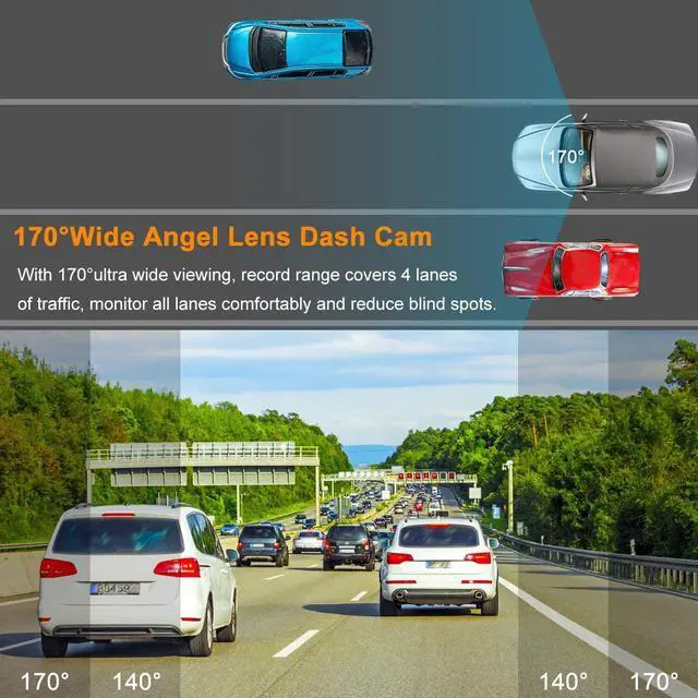 SUPER NIGHT VISION AND WDR TECHNOLOGY CAR CAMERA - Advanced Sensor with LED Light ensure full high-definition recording during day and night. This dash camera for cars with night vision is designed with F1.8 aperture and Wide Dynamic Range, thus when you driving in the evening with dash cam front that will be safer and reliable. Besides the front car dash cam equipped with a wide-angle camera of 170°, which can effectively eliminate visual blind spots and captures every detail on the way