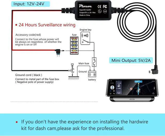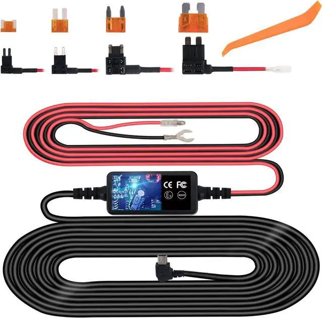 This mini usb cable and Micro USB port converter hardwire kit. Perfect for 24/7 Parking Surveillance.Low voltage protection protects against battery dying.Plozoe Dash cam hardwire kit works for almost all car mini & micro USB device, such as dash cammirror camGPS navigator and radar detector etc.