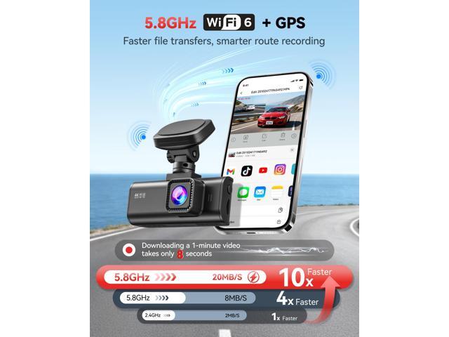 REDTIGER 4K Dash Cam Front and Rear,Built-in 5.8GHz WiFi GPS 4K+1080P Dual Dash Camera for Cars,3.18 inch Display Dashcam,170° Wide Angle Dashboard Camera Recorder, Night Vision,Parking Monitor