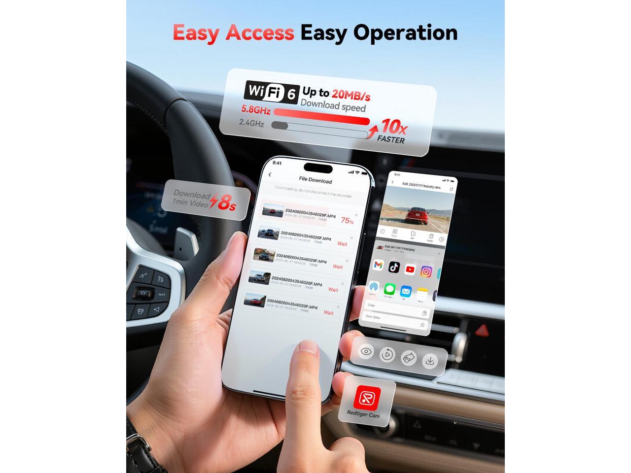 - Seamless App Connectivity: Supports 5.8GHz Wi-Fi for fast pairing with the Redtiger app (iOS/Android) to view, playback, edit, and share recordings effortlessly.