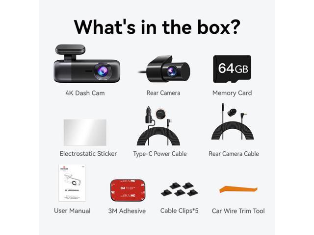 - [Free 64GB Card/Loop Recording] Free 64GB SD card included with the car camera, supports up to 256GB micro SD cards. Auto overwrites the oldest footage when the memory is full, freeing up space for new recordings.