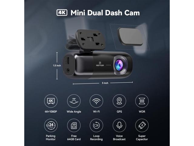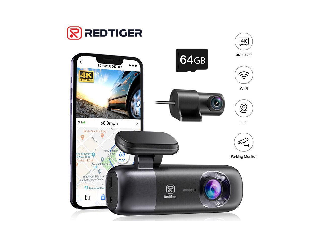 REDTIGER Dash Cam 4K Front and Rear 1080P, WiFi GPS Car Camera with Free 64GB SD Card, Dual Dash Camera for Cars, Loop Recording, Night Vision, Parking Mode, Smart App Control, Support 256GB Max