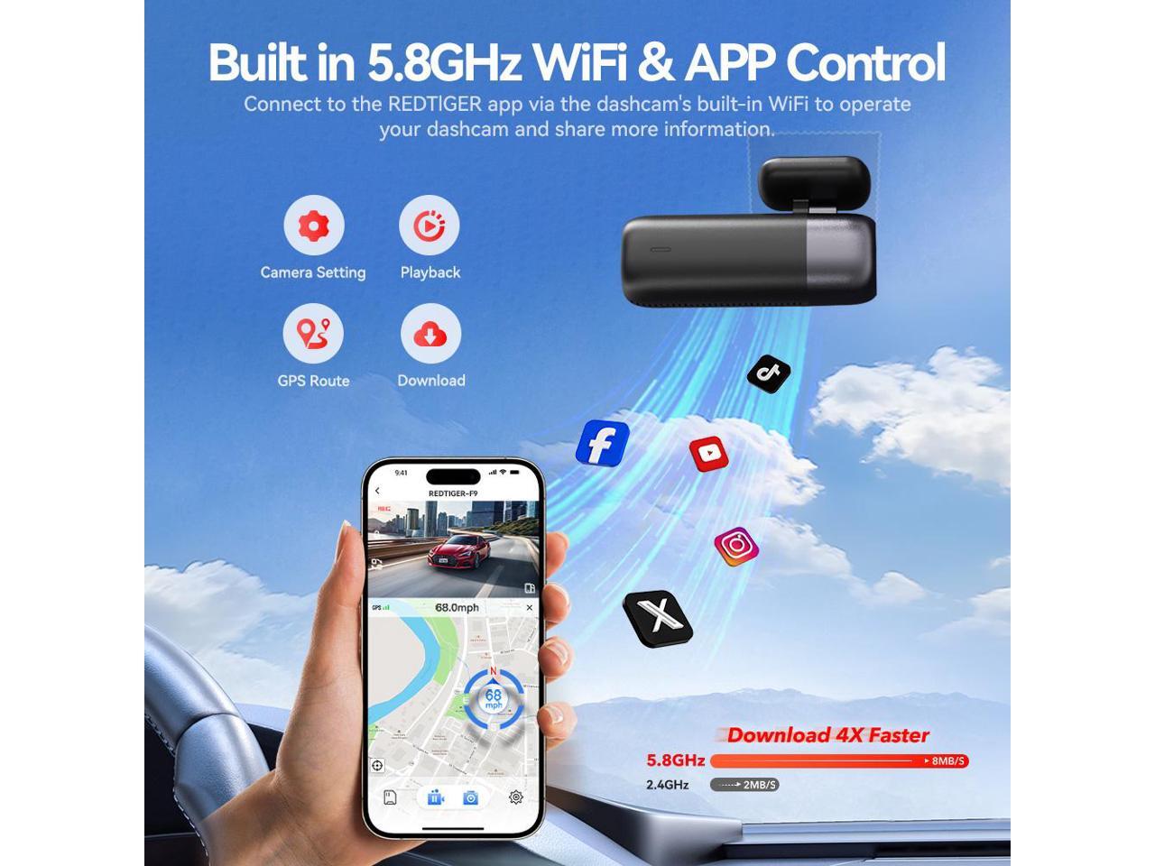 - [WiFi GPS&Smart APP Control] Connect to the REDTIGER app via built-in WiFi for real-time footage, recorded video playback and GPS data.