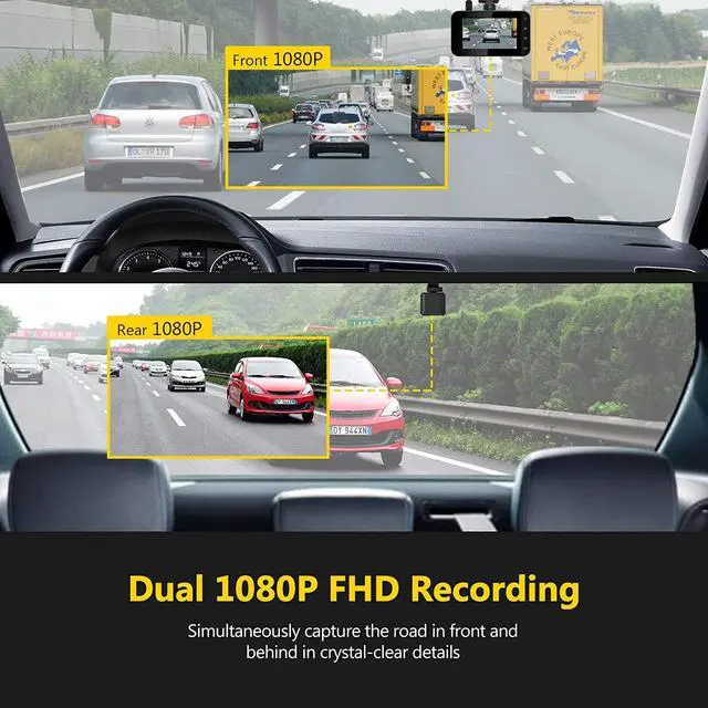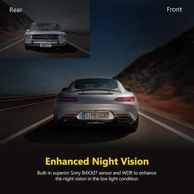 [FHD2k+1080P]Simultaneous recording front and rear both in Full HD 1296P+1080P at 30 FPS resolution, this dual dash camera can capture more details and presents you the magnificent footages for daily video recordings.