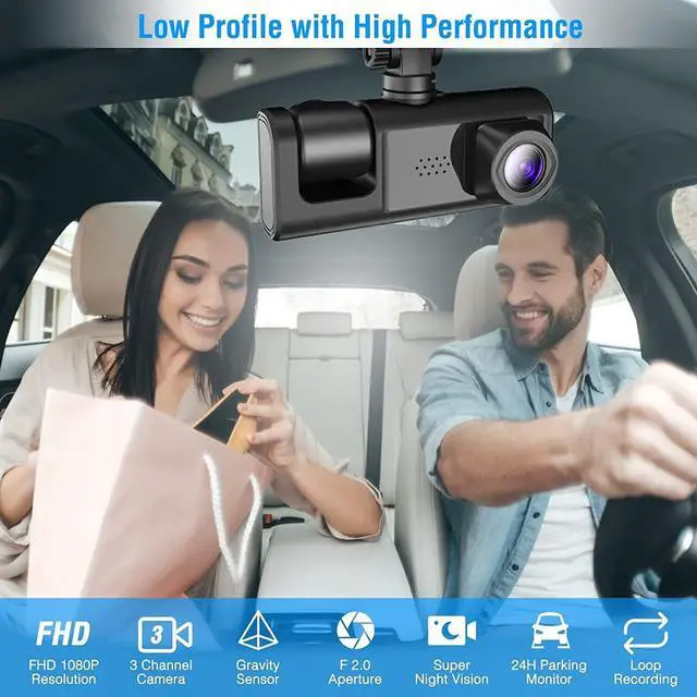 [FHD 1080P DASH CAM FRONT AND REAR INSIDE WITH HD DISPLAY] - Upgraded high performance 4-core chipset and Upgraded Sensor, and Sony Sensor, help deliver smooth 1080P front video + 480P cabin inside video + 480P rear video. Four display modes will be switched easily, 3 Channel Videos are displayed on the IPS screen giving you live time video feedback of 3 sides of your car.