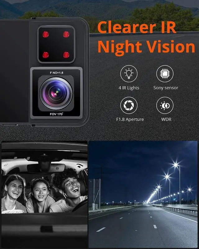 BETTER NIGHT VISION DASHCAM - Adopts the industry-leading STARVIS sensor and Hisilicon processor for better image effect. With f/ 1.8 aperture and WDR technology, you can record stunning details even in low-light environments