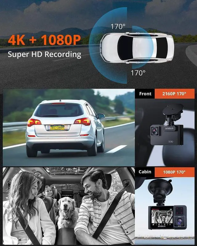 4K + 1080P FRONT AND CABIN RECORDING - D1 pro 4K version is the upgraded version of D1 pro 2K, it supports 4K 2160P front recording and 1080P cabin recording simultaneously. Compact hidden design and dual 170°super-wide viewing angles lens, it gives you maximum coverage of the road and provide sharp and clear images and videos