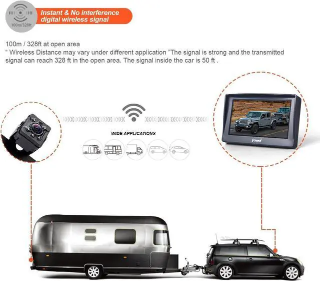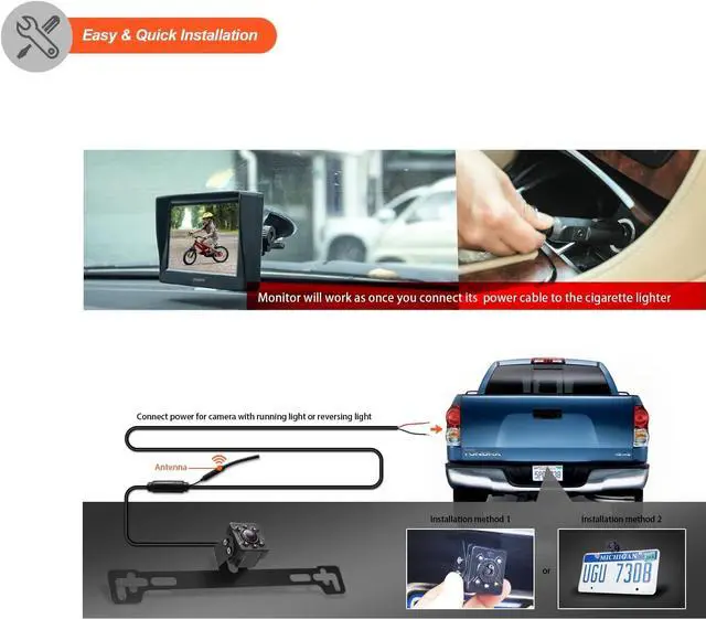 Wireless Design for DIY Easy Installation: Monitor installation just takes one minute; backup camera is powered from transmitter directly. Make all things much easier