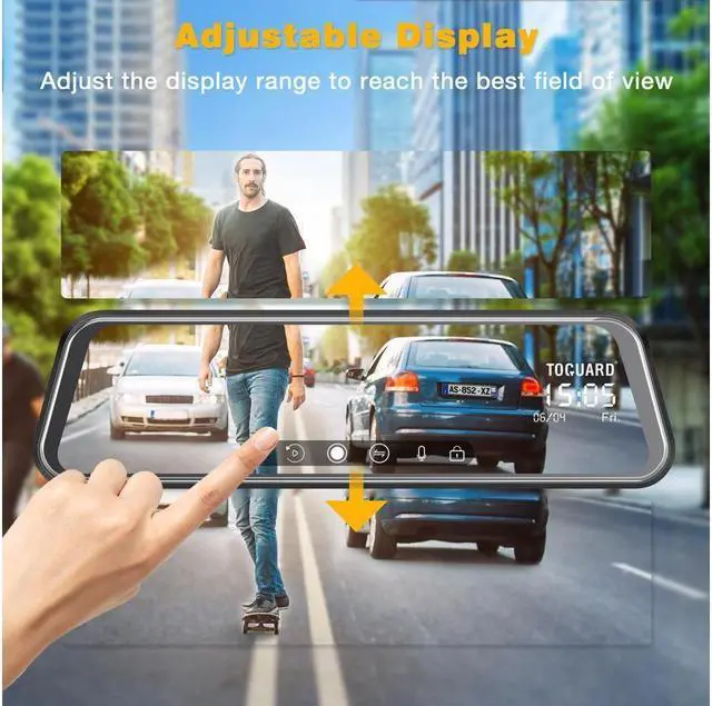 The backup camera automatically provides an adjustable display at different angle while driving or reversing, and you also can manually adjust the display range either up or down to reach the best field of view. You can switch front and rear view easily by swiping the screen right to left, and repaly the video by swipping from left to right.