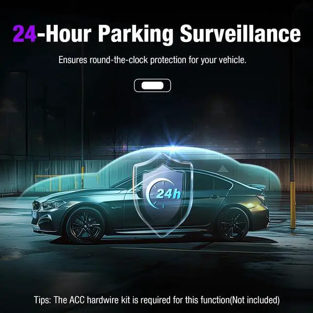 If you want to enable the 24-hour parking function, an ACC hard wire kit can solve the problem (Our dashcam does not come with an ACC hard wire kit. If you need one, please contact our after-sales to get it.)