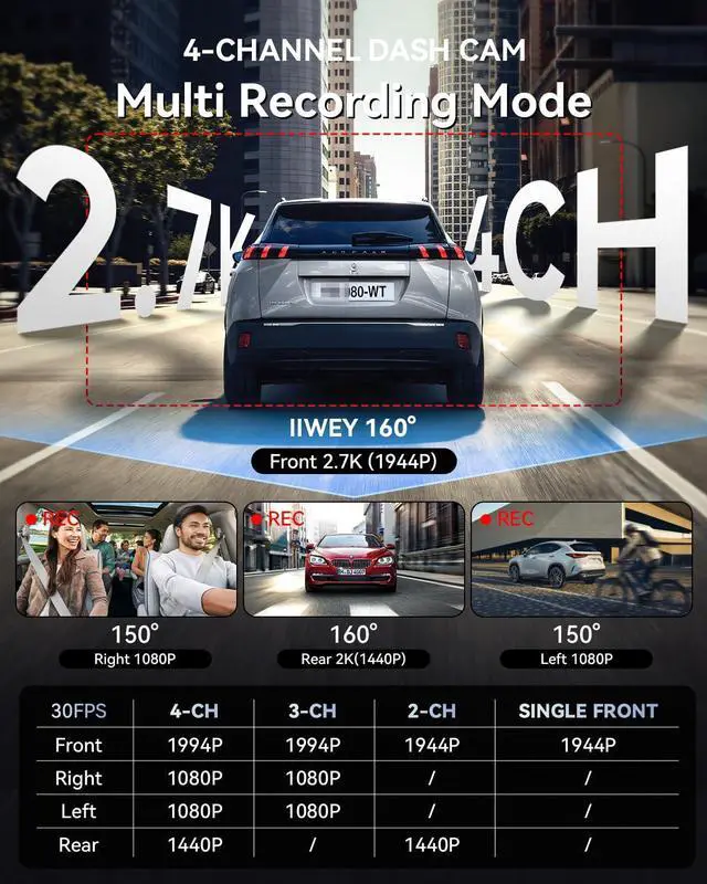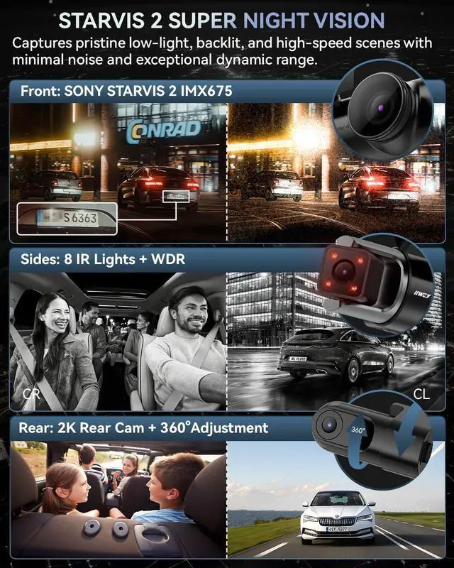 IIWEY | C4 PRO 4-Channel Dash Cam - Featuring STARVIS 2 IMX675 for 360° Security