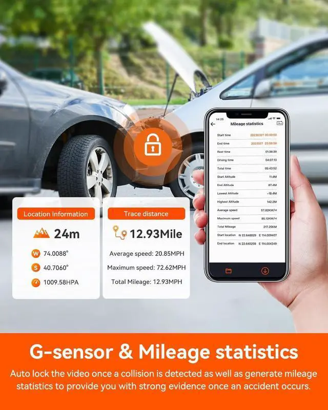 [OTA Firmware Update&Faster 5GHz Wi-Fi&GPS] Supports OTA upgrades on app to imp performance and updated features. With always-on 5GHz Wi-Fi, you can more easily access videos and photos recorded on your phone through "" App, and share your travel scenery and moments to your family and friends on social media. Built-in GPS allows you to view your driving route and location on the app, and a speed stamp can be embedded in the video, which will provide additional evidence you may need.