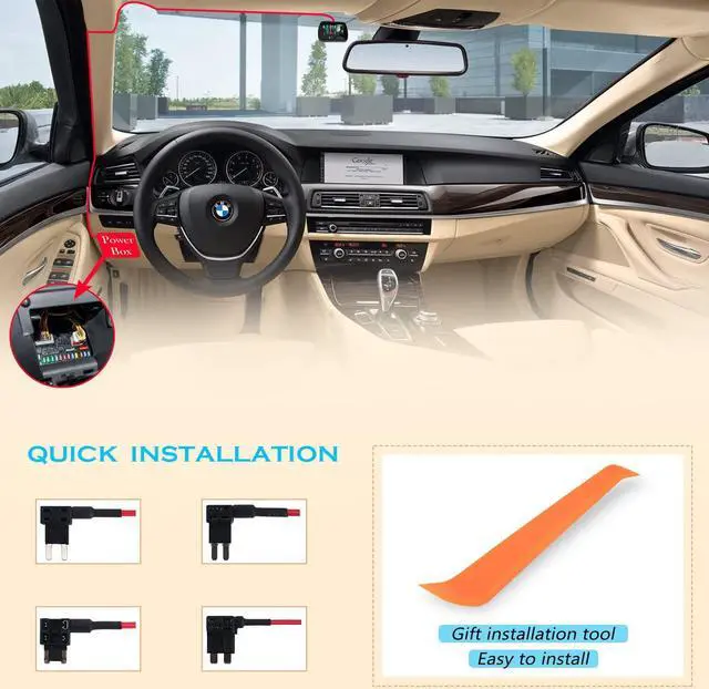 Upgraded the 2nd Generation Dash Cam Hardwire Kit-You will get 1 x Mini USB hardwire kit, 1 x installing crowbar, 4 x fuse tap cable, dash cam hardwire with the most popular fuse types will meet the applications for most car models