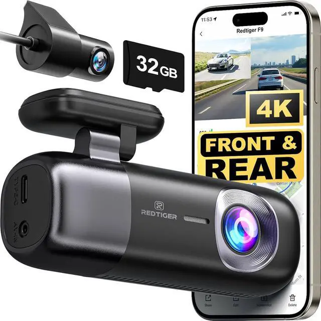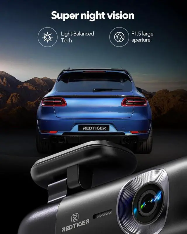 [4K+1080P Dual Dash Cam] Universal Car camera with FHD 1080P rear and 4K super HD front cameras. The F9 dash cam front and rear camera captures in-depth footage while driving thanks to its F 1.5 aperture, excellent night vision, and 170°wide angle.