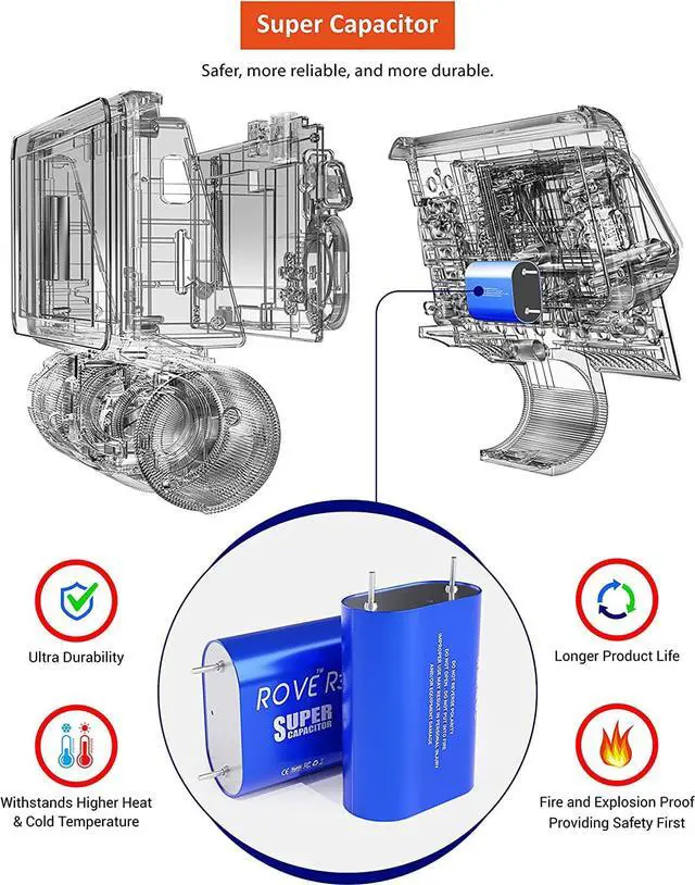 Super Safety by Super Capacitor R3 is powered by a Super Capacitor rather than a lithium-ion battery. This ensures survivance and safety in both extreme hot and cold weather conditions from -4°F (-20°C) ~ +158°F (+70°C). Unlike regular internal batteries, Super Capacitors provide a longer camera lifespan and prevent internal damage.