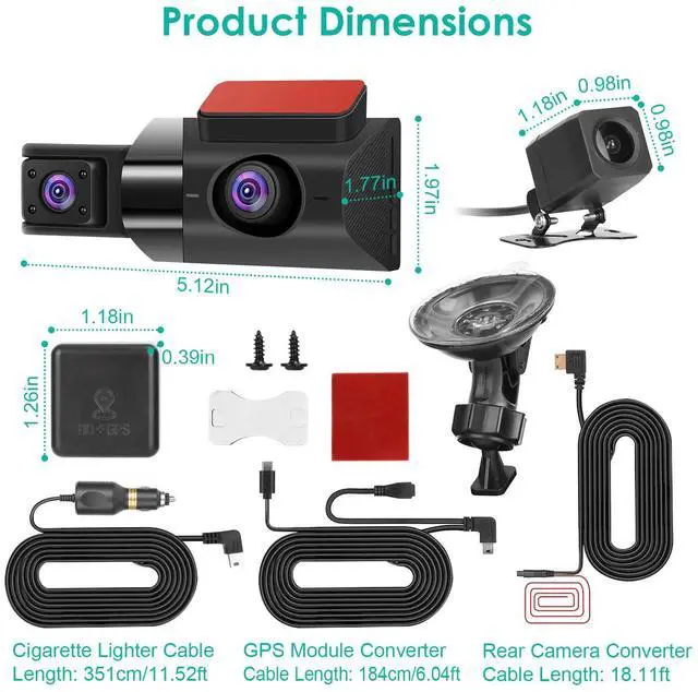 GPS & Easy Installation:This dash cam also supports GPS to precisely pinpoint the vehicles location,routes on the map and records the driving route,real-time speed,location,etc.,which will provide further additional evidence if an accident occurs. Easy to install. Just stick the dash cam to the windshield and install the rear camera based on the car structure,space-saving and not blocking your line of sight while driving.