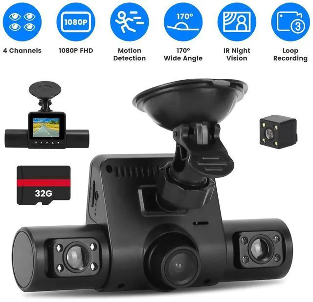 - 4 Channels Car Dash Cam:Our upgraded 4-channel car dash cam comes with 1080P front,480P right and left interior,480P rear cameras,providing 360° all-around coverage of your vehicle's surroundings. The front camera offers 170° wide viewing angle to capture activities on the road ahead, while the rear camera with 120° viewing angle records any events occurring behind the vehicle. Additionally, the 180° rotatable right & left side lens allow you to adjust according to your specific needs, avoiding potential liability issues and accidents.