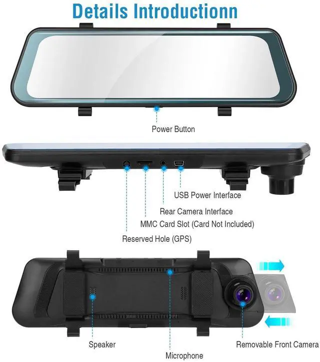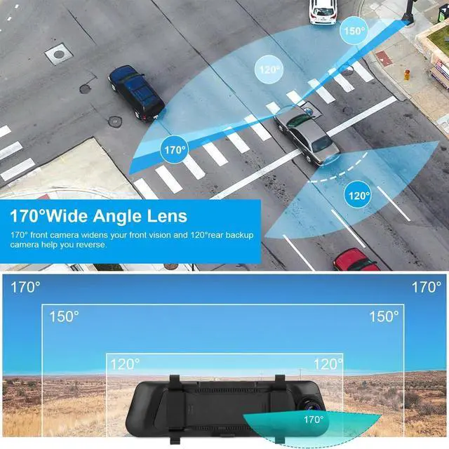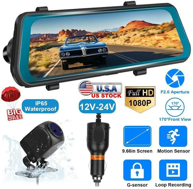 9.66" HD SCREEN: 9.66" HD display screen can show full front camera image/full rear camera images,or both images simultaneously. Bring much convenience to control the whole driving environment and make optimal driving choice. Mount dash cam on the windshield and rear view camera behind the car,the camera will record automatically when driving.