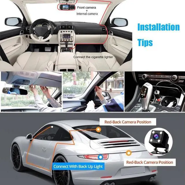 3 CHANNEL FRONT AND REAR AND INSIDE DASH CAM: This dash cam system includes a 1080P front camera, a 720P rear camera, and an 480P inside car camera, providing comprehensive surveillance for your vehicle while reducing visual blind areas. The Screen made by IPS panel, It allows you to see a clear picture at any angle without any blurring. Help you retain and provide evidence if an accident occurs