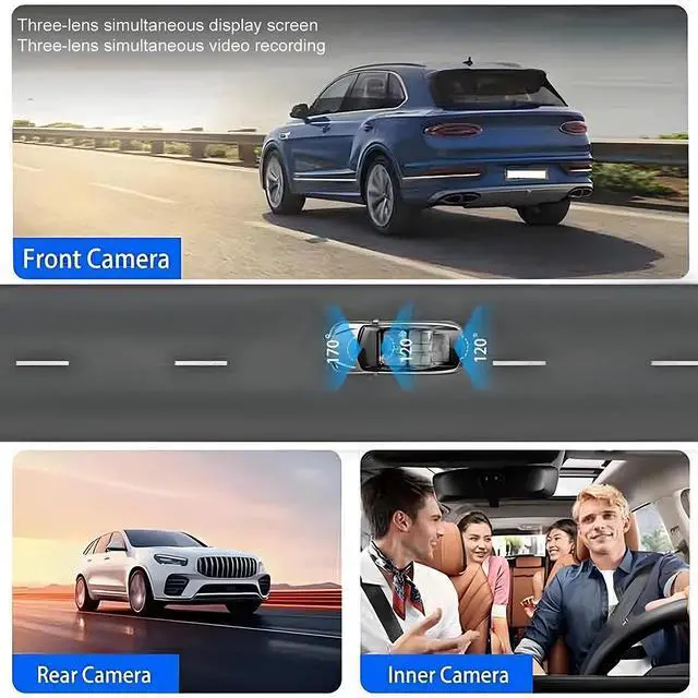 - Capable of displaying footage from three different lenses at the same time, likely through a split-screen feature, allowing users to monitor multiple areas concurrently.