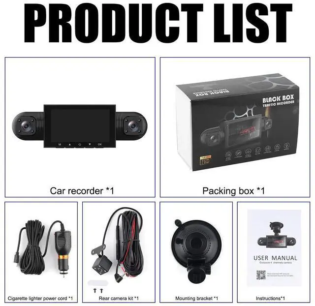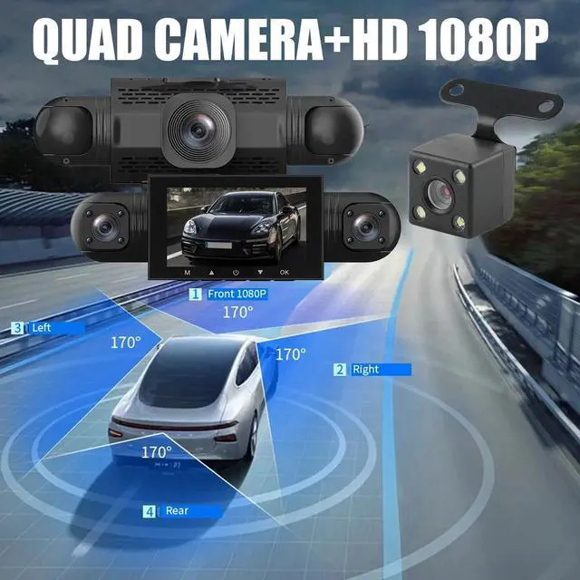 360° Dash Cam Recorder 4 Channel 1080P 4K Car Camera DVR Vehicle Video G-Sensor