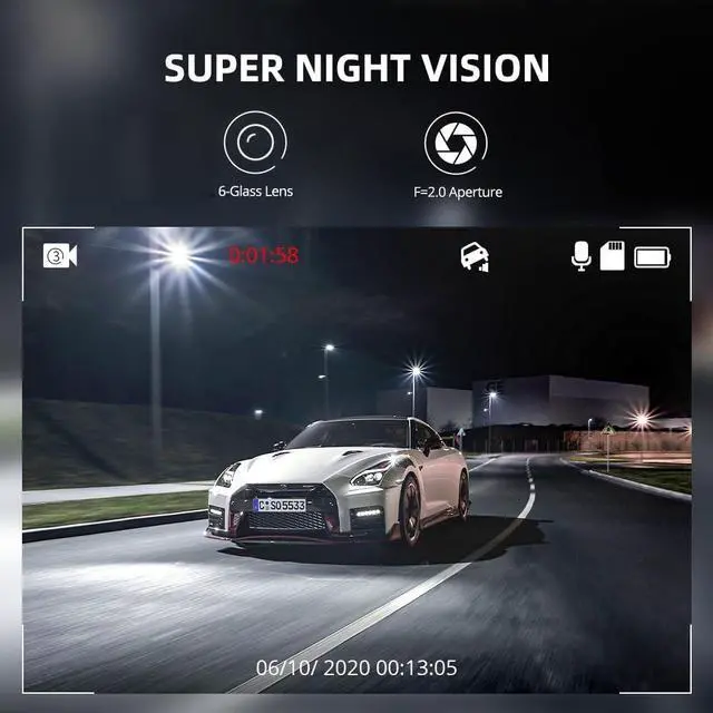 Super Night Vision: WDR dashcam delivers super night vision. Dual dash cam could clearly capture all the road details in dim light.