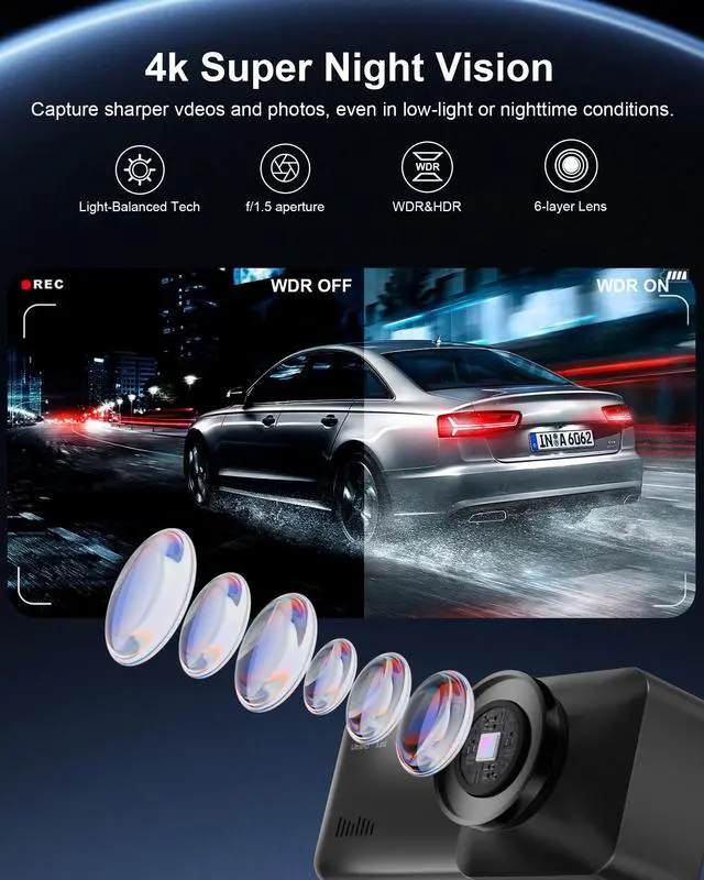 Invest in Peace of Mind. Don't leave your safety and security to chance. The 4K Dash Cam with Built-in GPS, Blazing 5.8GHz WiFi, Included 64GB Card & 48W Fast Charger provides the comprehensive protection, stunning clarity, and ultimate convenience you demand.