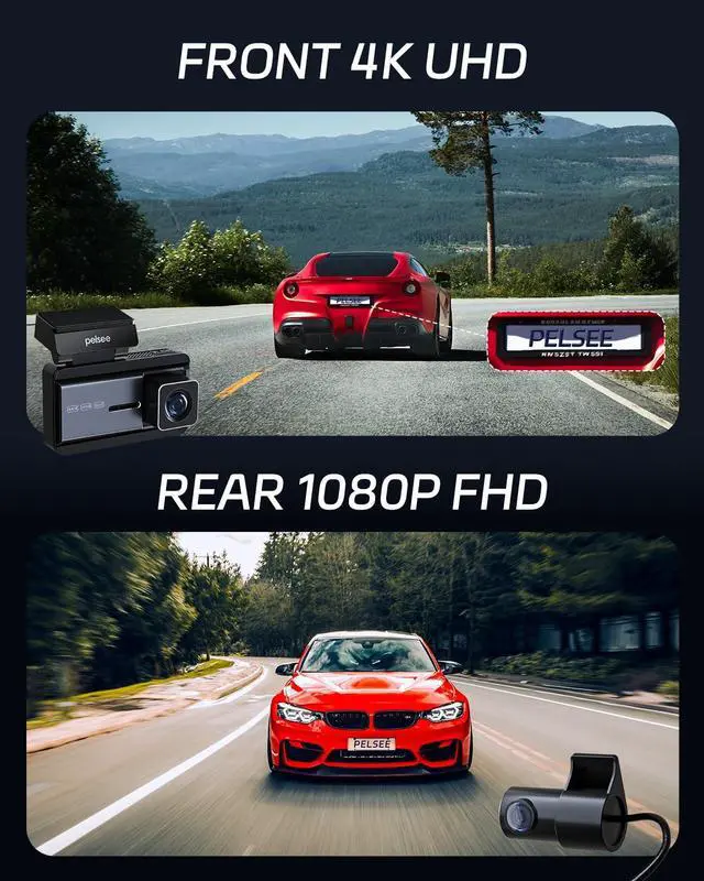 | Special features | Single Front 4K Dash Cam, Dual Channel 4K +1080P, 64GB Card, 3'' IPS Screen, Night Vison, Easy Installation, G-Sensor, 24H Parking Mode, Loop Recording, Built-In WiFi, Built-In GPS, WDR, ADAS, BSD, LCA, APP Control, Voice Control |