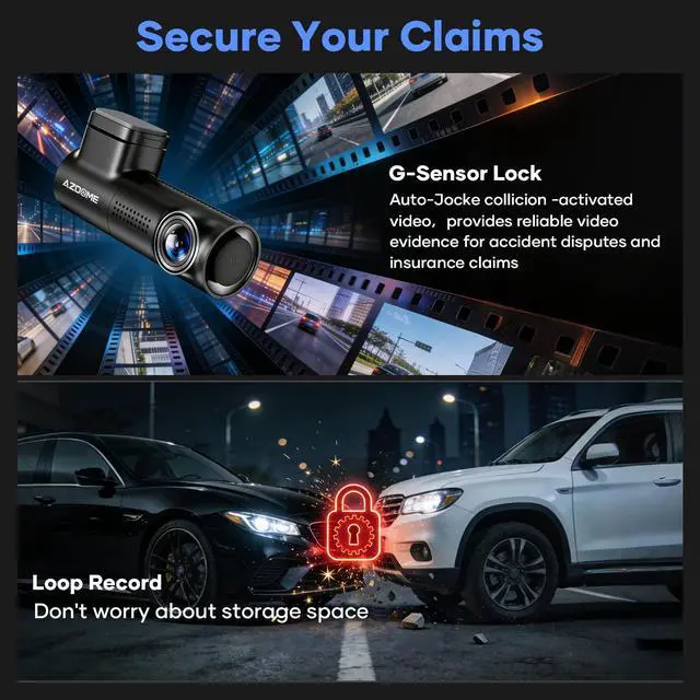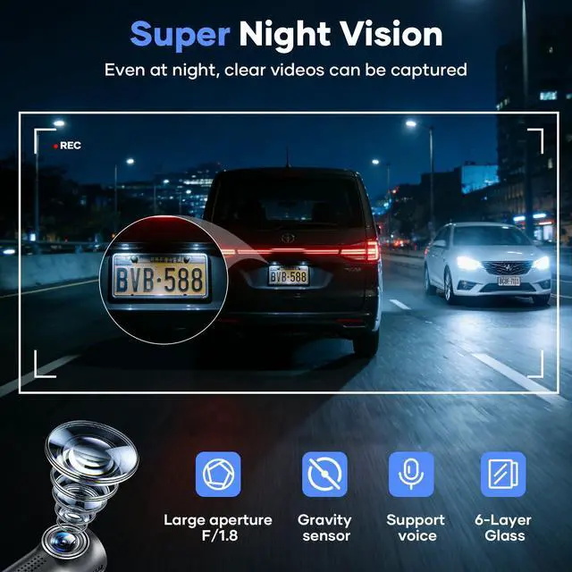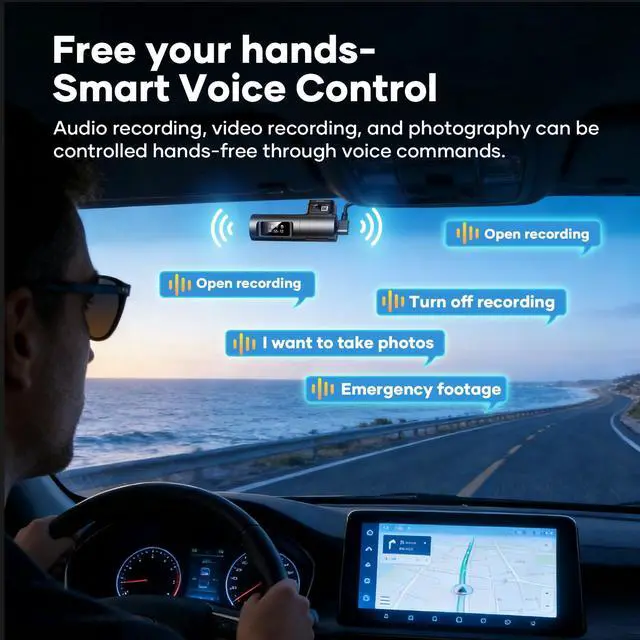 No screen and voice control: This dash cam front features a screenless design, allowing you to control your car with voice while driving without being distracted by the screen, allowing you to focus on the road and reduce interference.