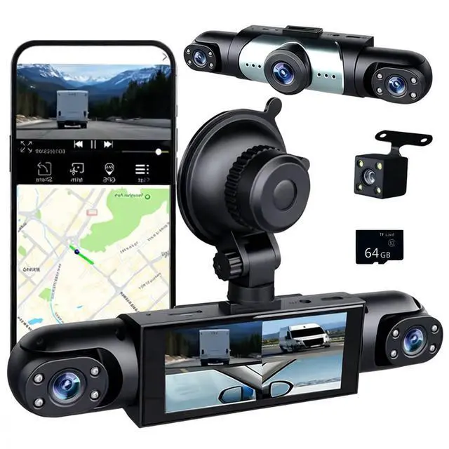 1080P 4-Channel Dash Cam The 4-Channel dash cam has 4 lenses,the front of recording is Full HD 1080P video simultaneously. The 4 cameras captures footage from the front, left, right and rear sides of the vehicle at the same time. The three front lenses can be adjusted to different angles. It can easily cover 360 degrees, ensuring that there is no dead angle around the car.