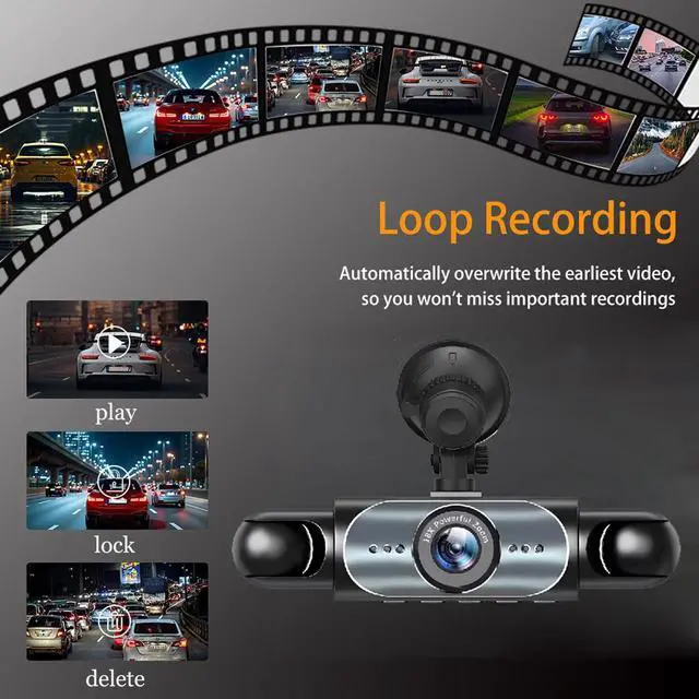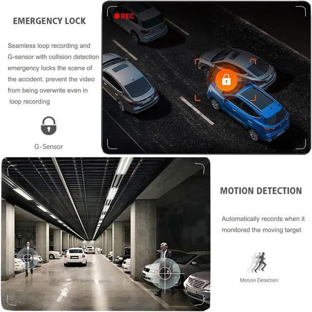 G-Sensor Dashcam and Loop RecordingThis car camera built-in sensitivity G-sensor can automatically detect a sudden shake/collision and locks the footage to prevent the video from being overwrote even in loop recording. When the built-in memory reaches its maximum capacity, the oldest unlocked footage will be overwritten to ensure infinite loop recording.