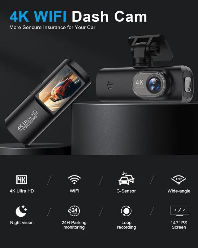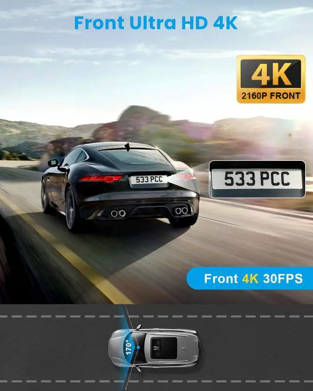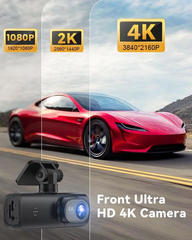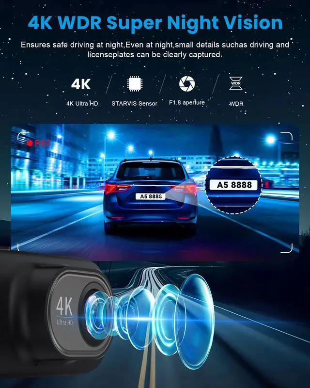 4K Dash Cam Front Experience ultra-clear 4K(3840*2160P) resolution that brings every drive to life with incredible clarity. The 170° wide-angle lens expands and capture more what matters. This dash cam also features 6-glass optics and an F1.8 aperture to clearly document every moment behind the wheel.Whether you're in a car, truck, or on a road trip, the dashcam is your reliable eye on the roadready to deliver critical evidence when it counts.