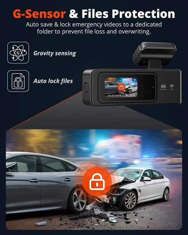 G - sensor instantly detects sudden impacts or vibrations when your vehicle is parked, triggering recording.