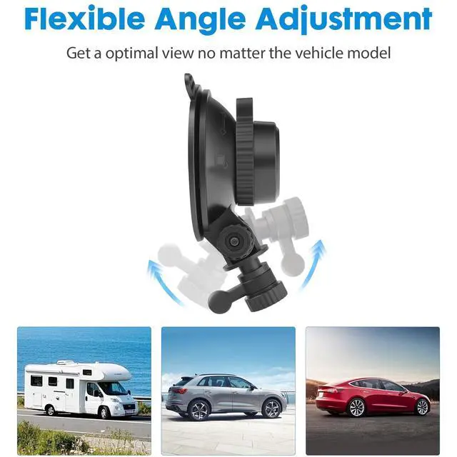 The dash cam mount offers 360° rotation and flexible angle adjustment, ensuring the ideal viewing position for sedans, trucks, SUVs, pickups, vans, and more.