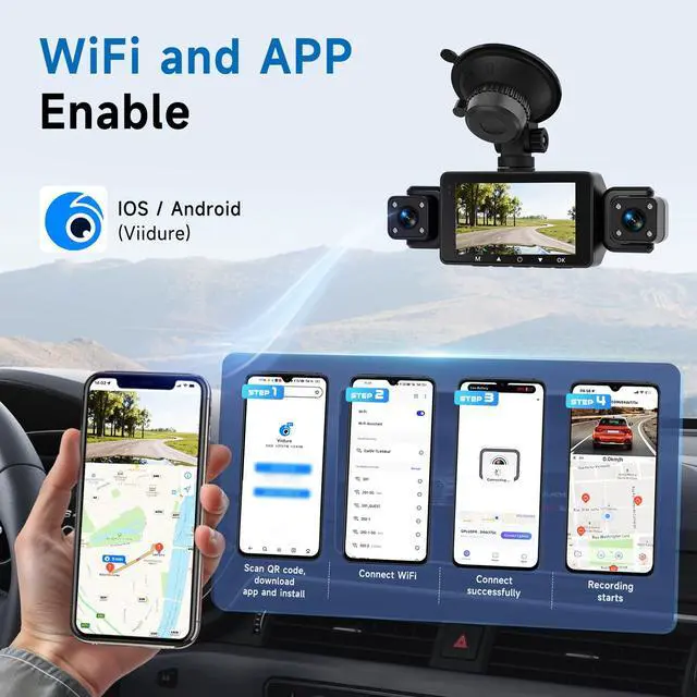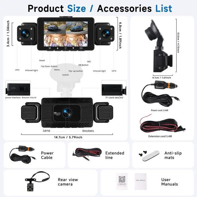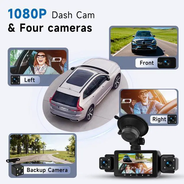 4-Camera System for 360° All-Around Protection: Drive with ultimate confidence. This advanced dash cam system features four lenses: a front camera recording the road, an inside camera monitoring the cabin, and a rear camera for the traffic behind. Its the all-in-one solution for a front and inside dashcam and a front and rear camera for car, eliminating blind spots and providing complete evidence coverage.
